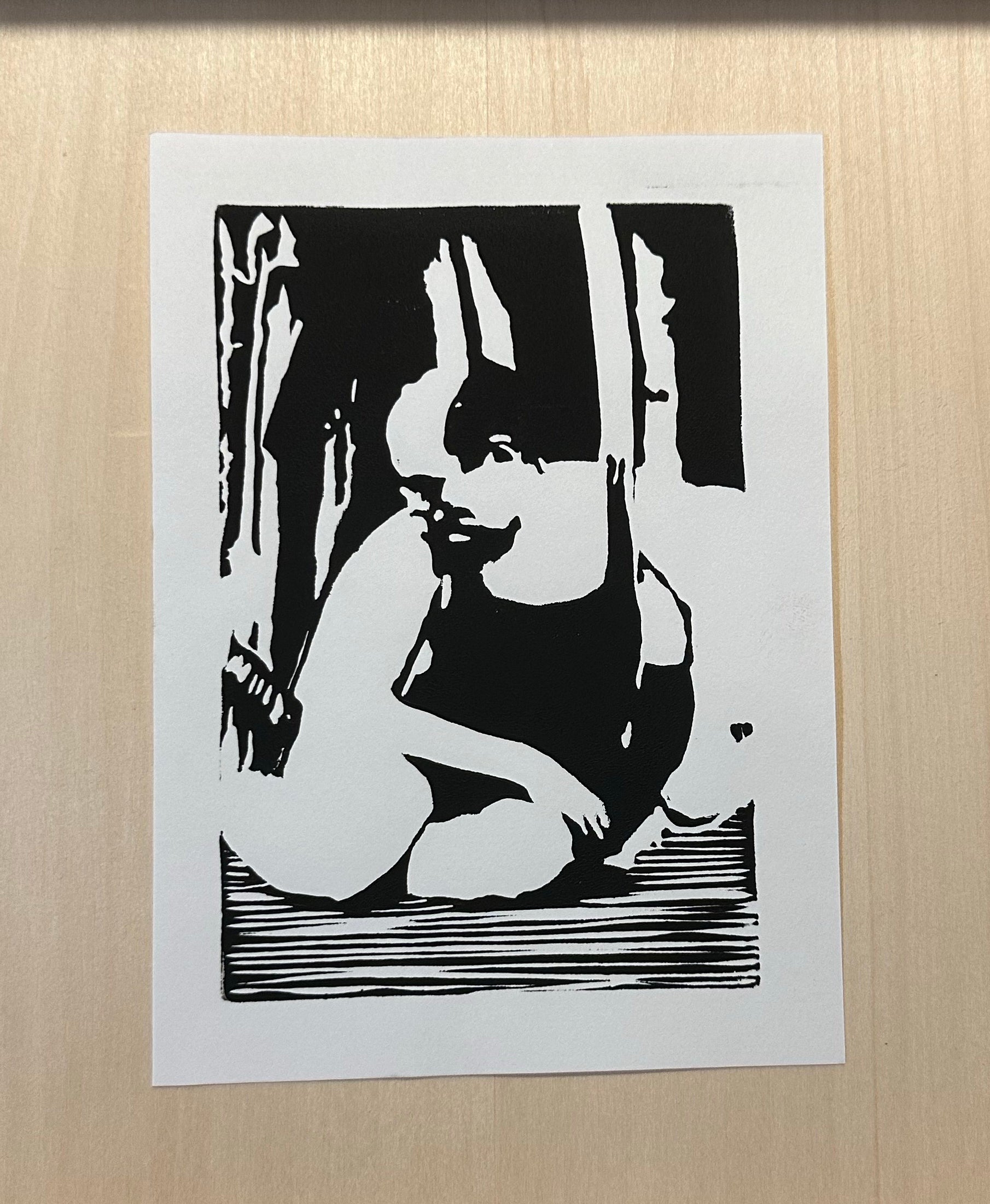 Hand carved on 4x6" block and printed on 5x7" paper.