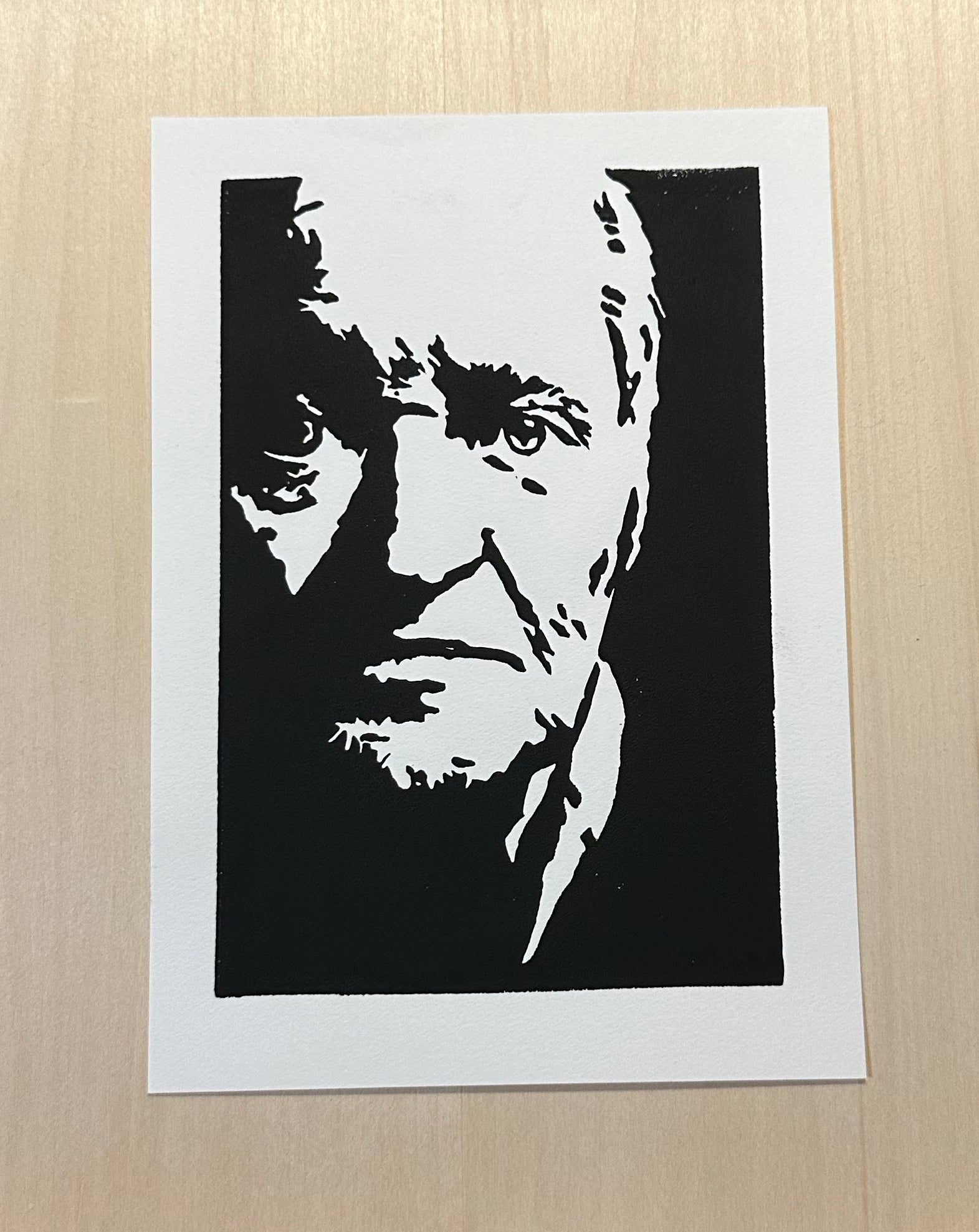 Hand carved on 4x6" block and printed on 5x7" paper.
