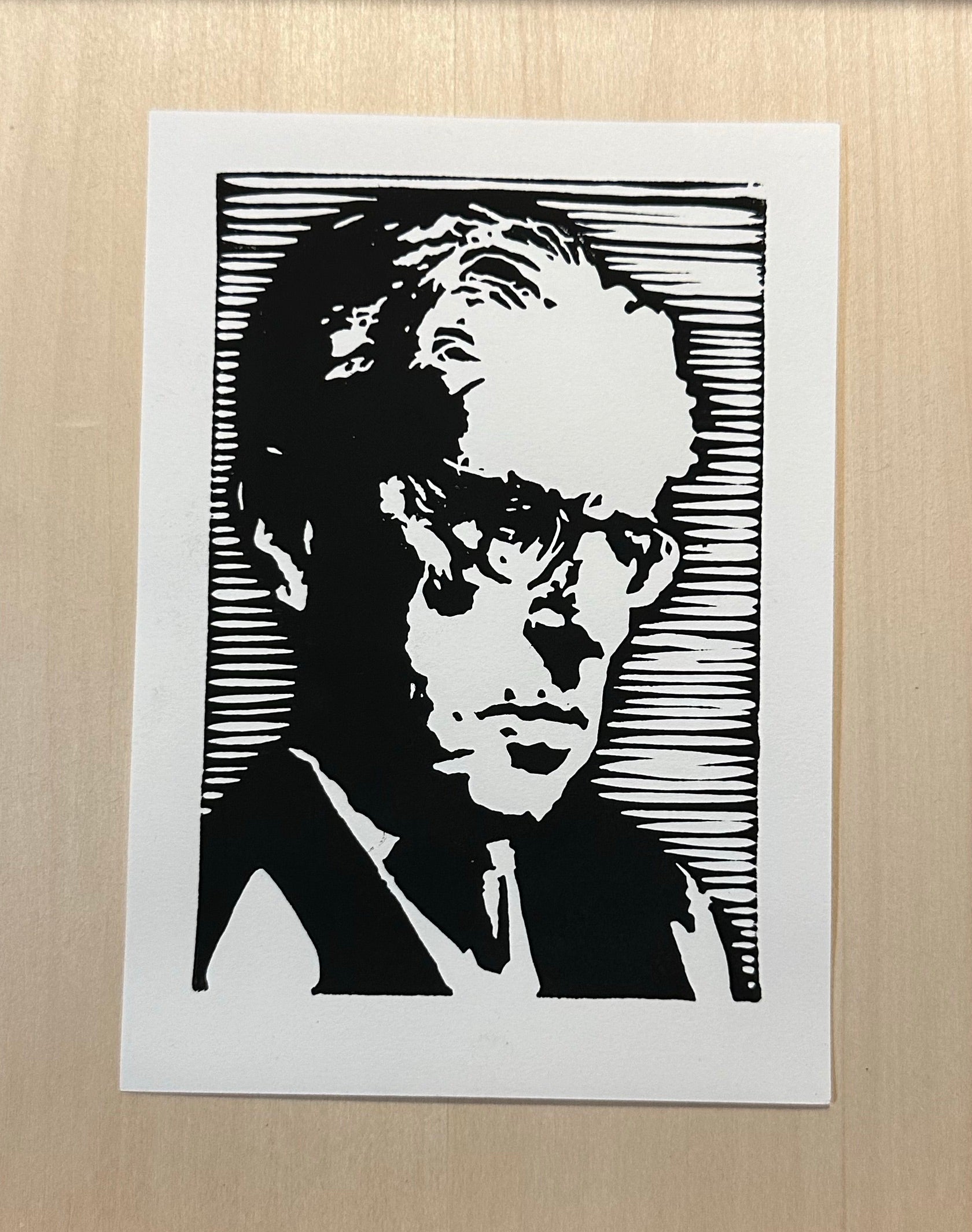 Hand carved on 4x6" block and printed on 5x7" paper.