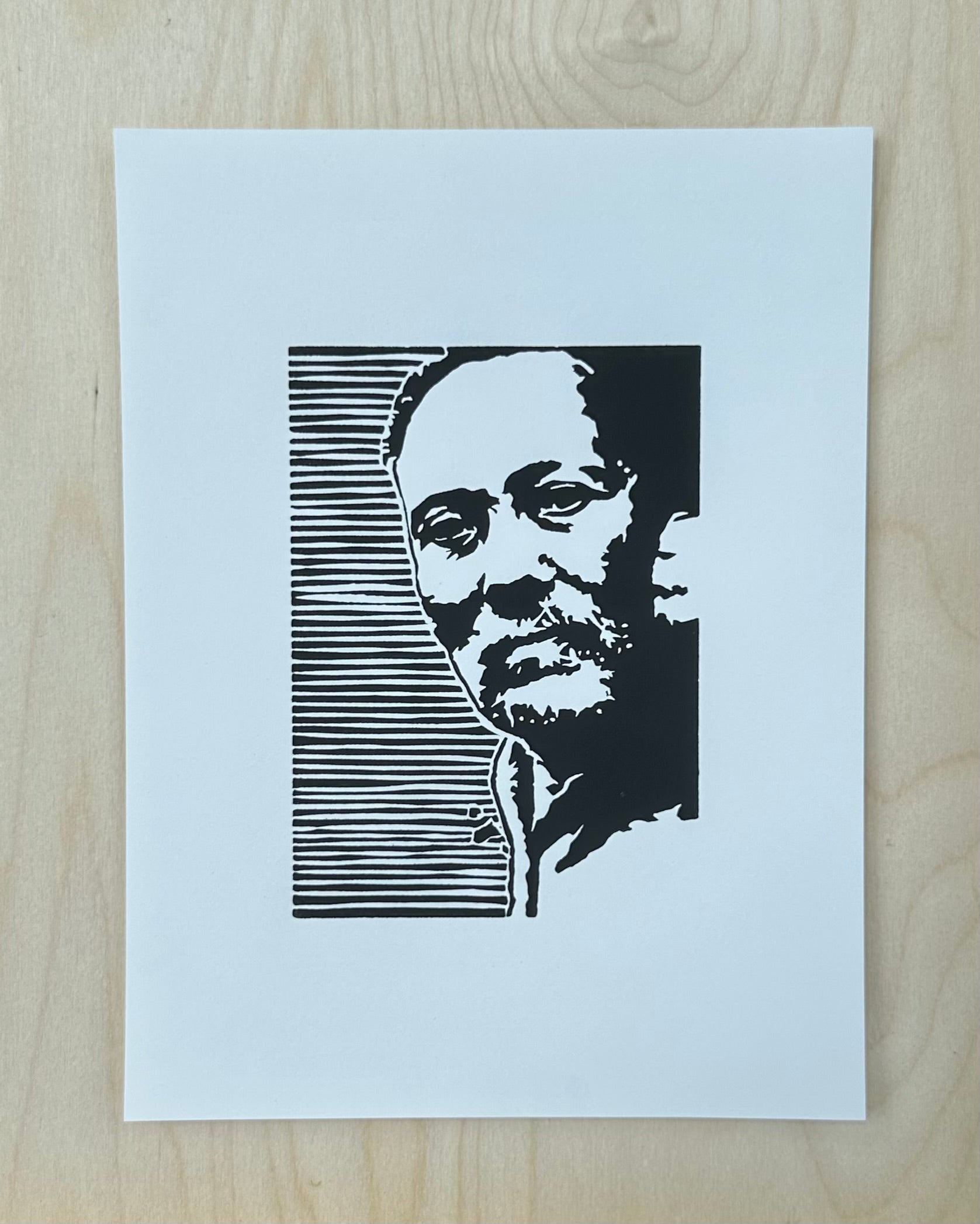 Hand carved on 5x7" block and printed on 9x12" paper.