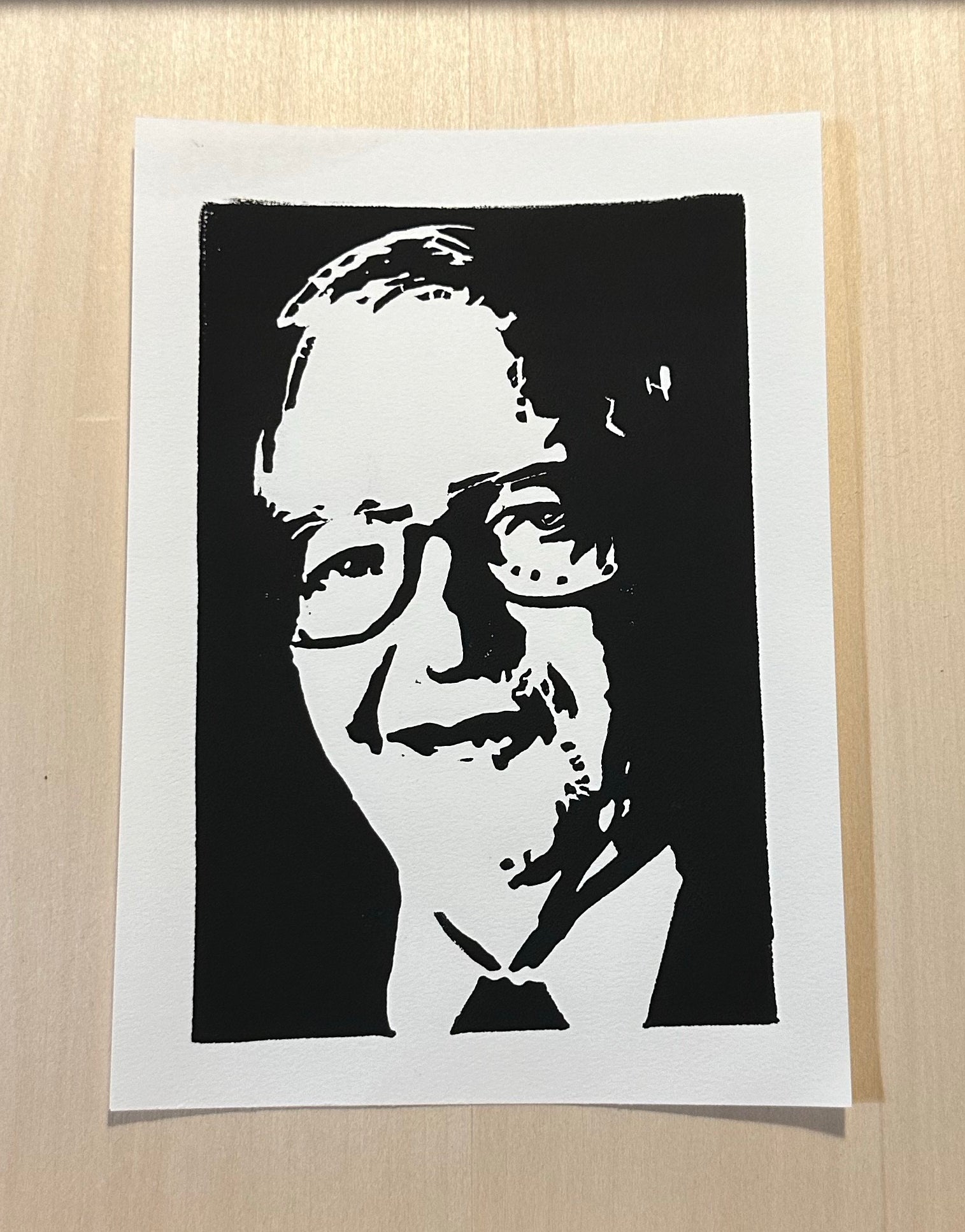 Hand carved on 4x6" block and printed on 5x7" paper.