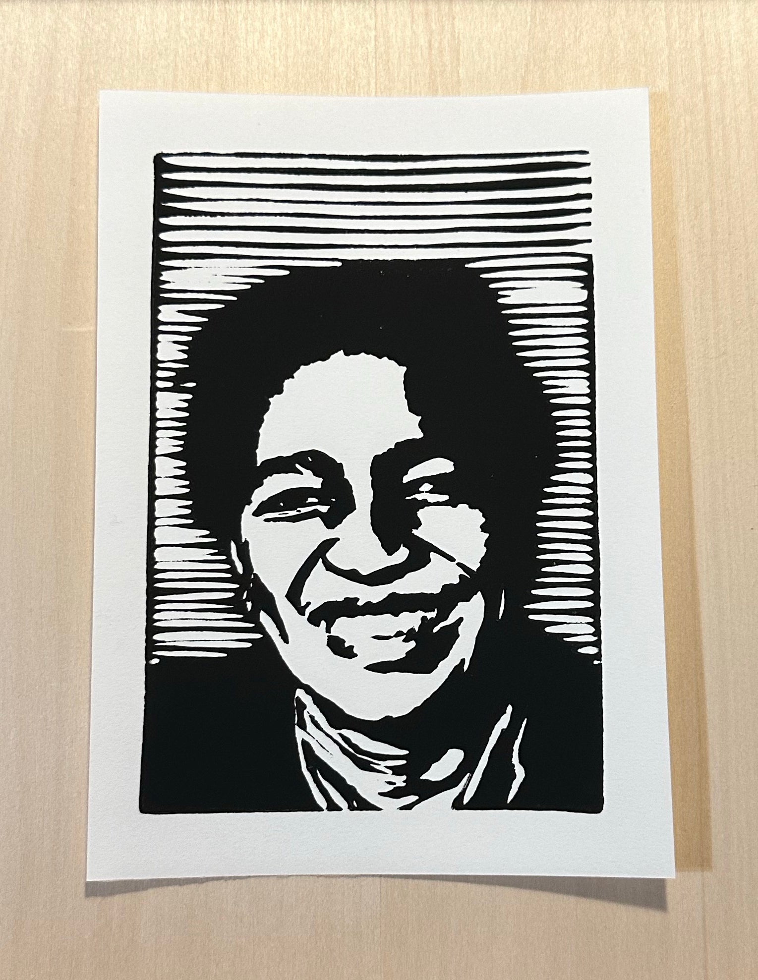Hand carved on 4x6" block and printed on 5x7" paper.