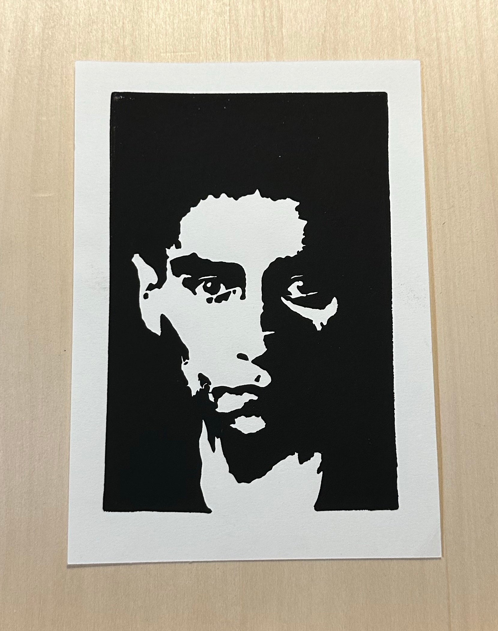 Hand carved on 4x6" block and printed on 5x7" paper.