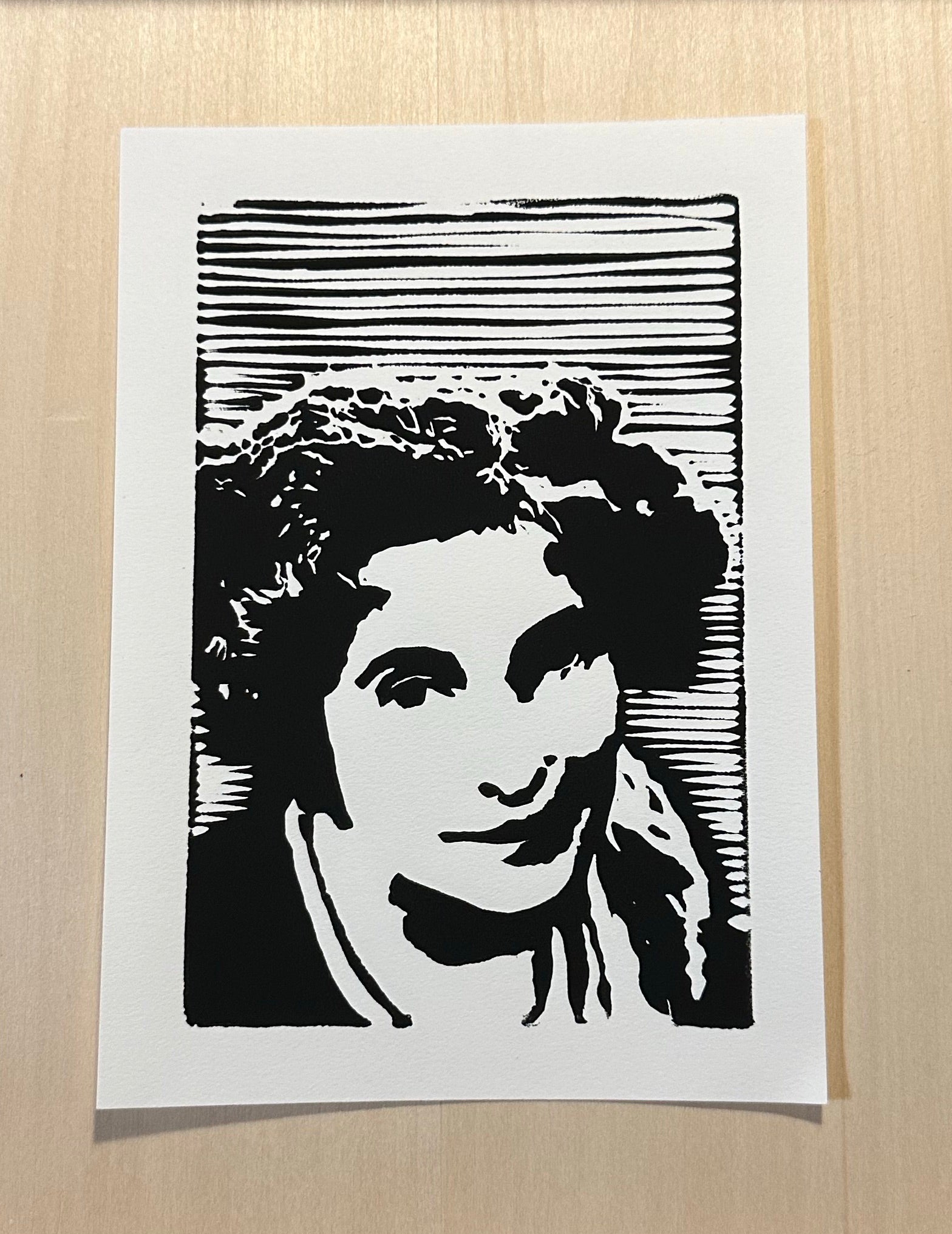 Hand carved on 4x6" block and printed on 5x7" paper.