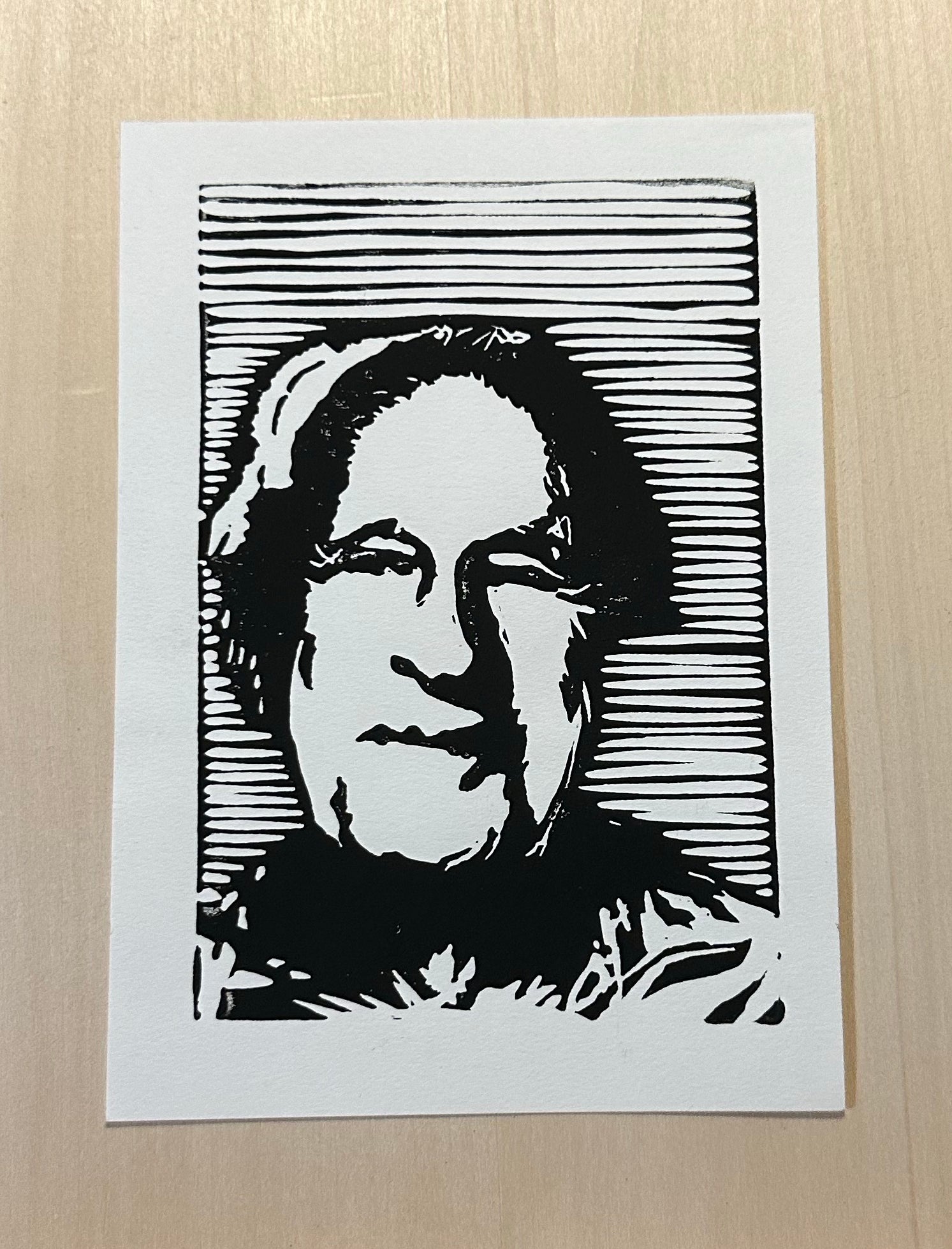 Hand carved on 4x6" block and printed on 5x7" paper.