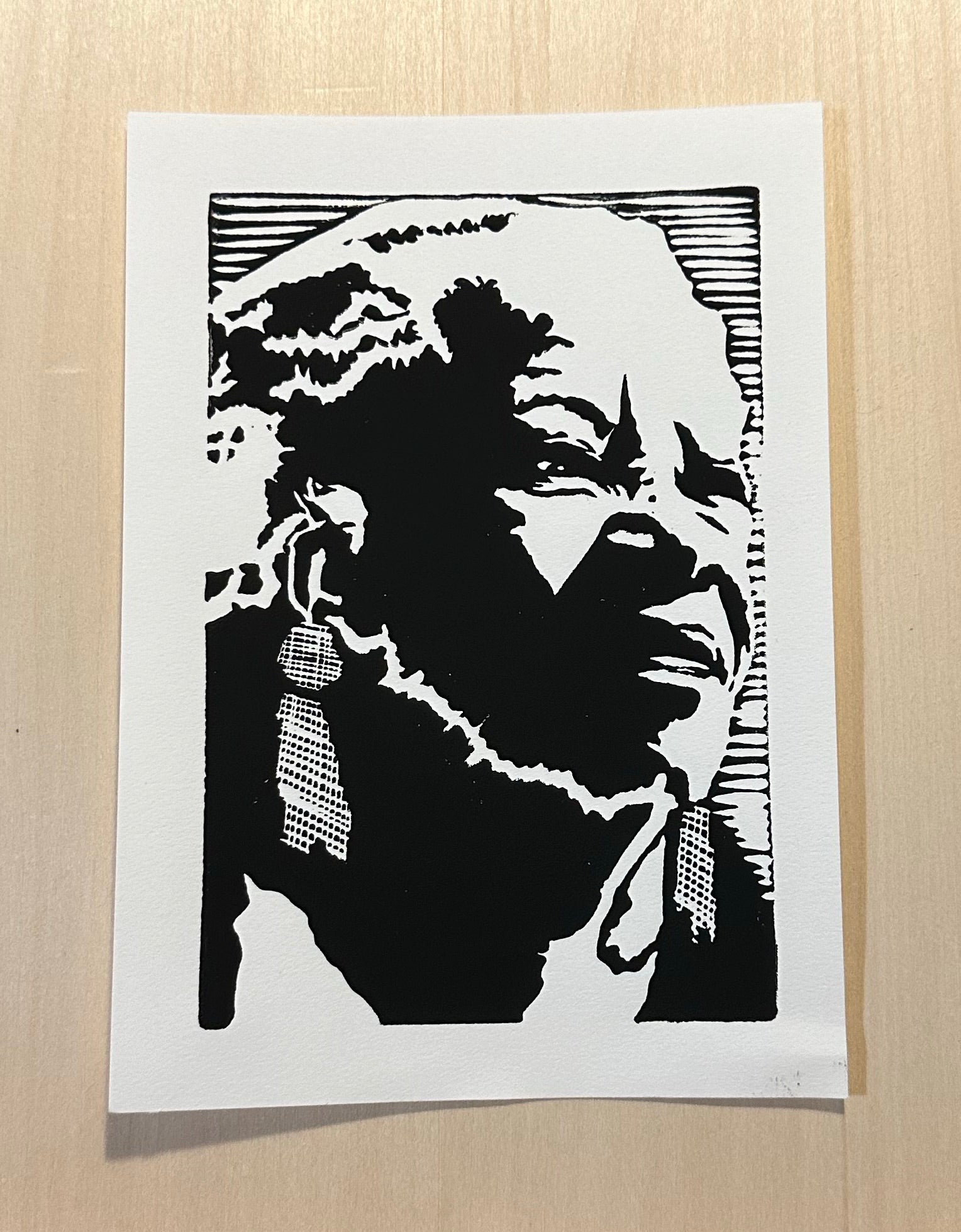 Hand carved on 4x6" block and printed on 5x7" paper.