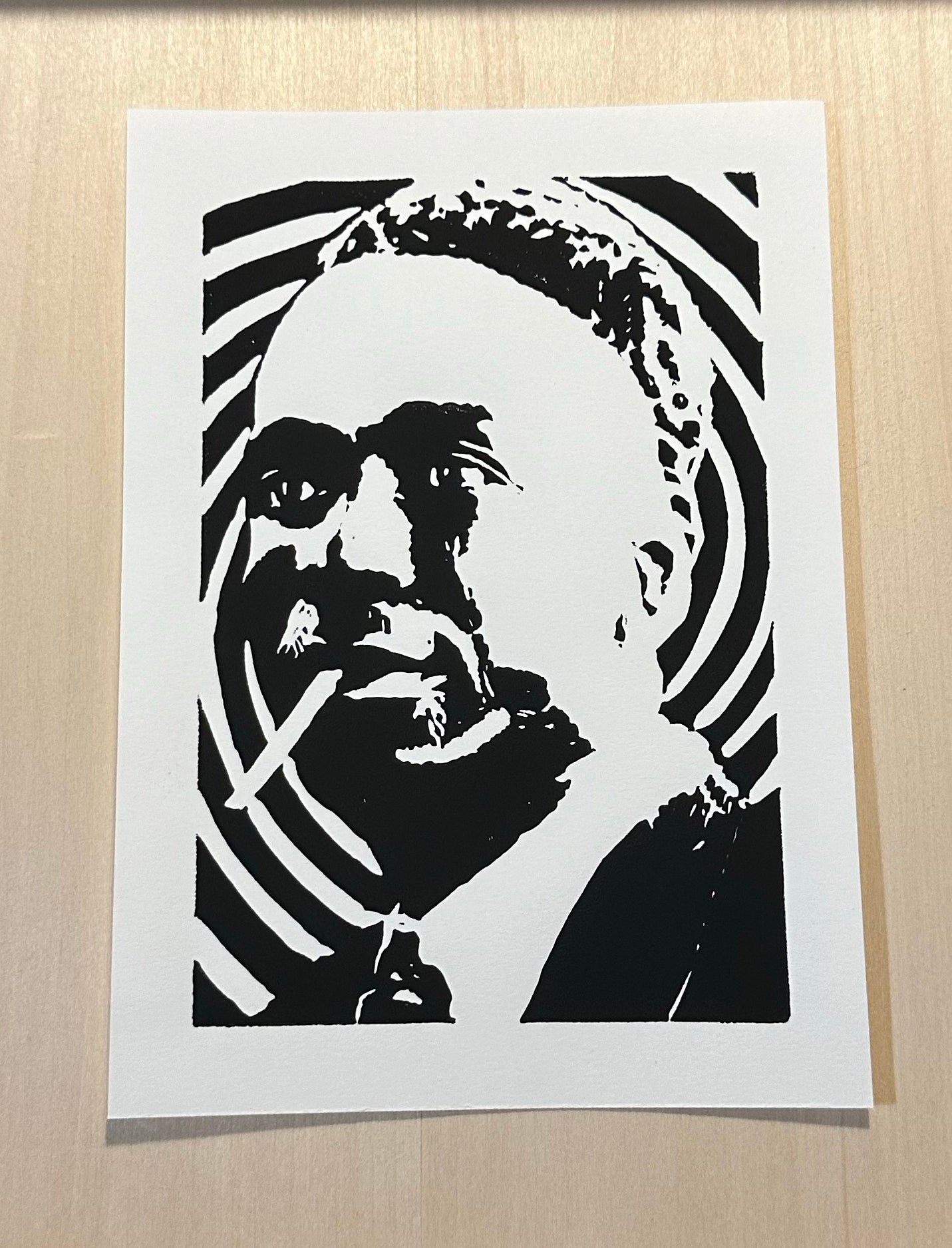 Hand carved on 4x6" block and printed on 5x7" paper.