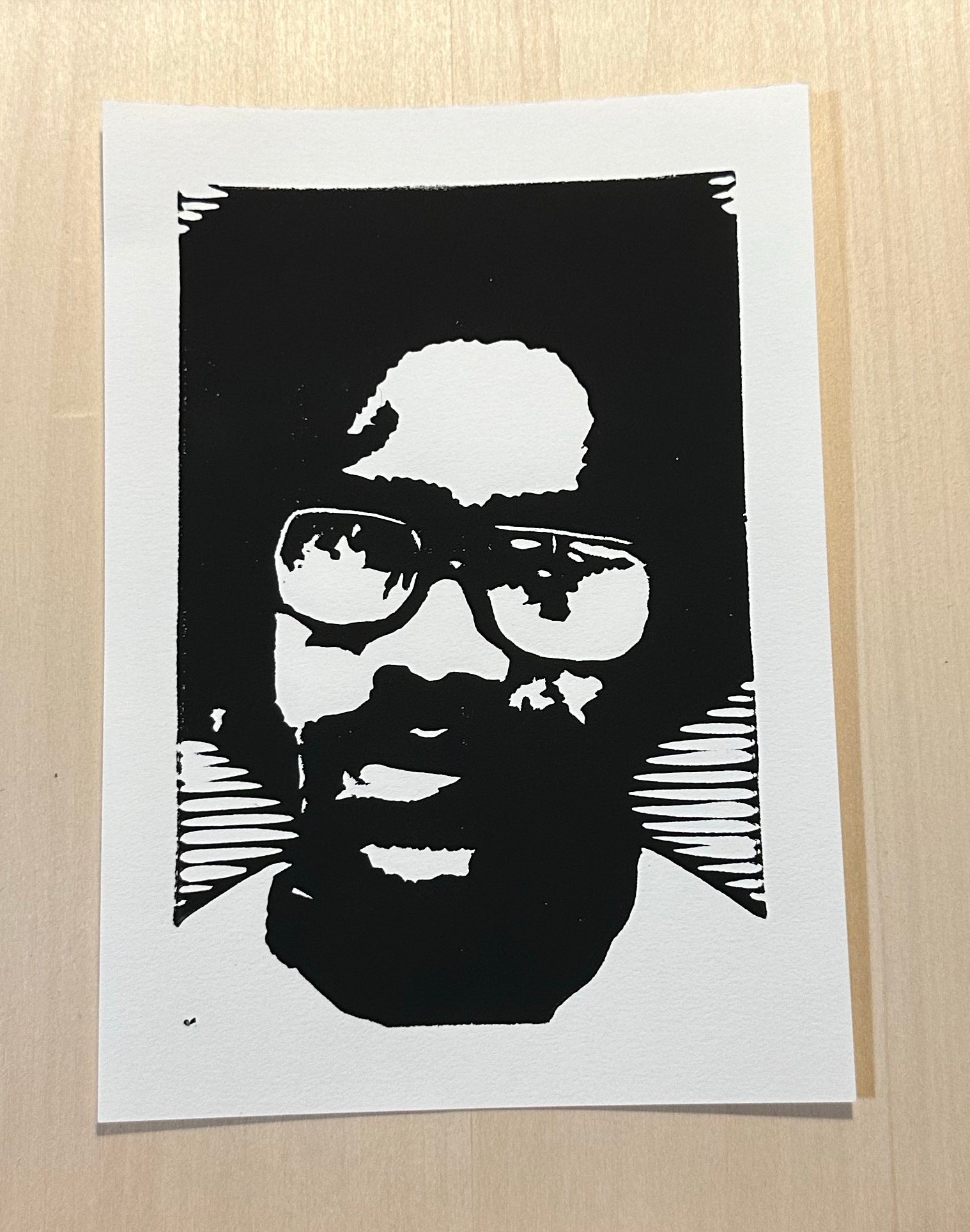 Hand carved on 4x6" block and printed on 5x7" paper.