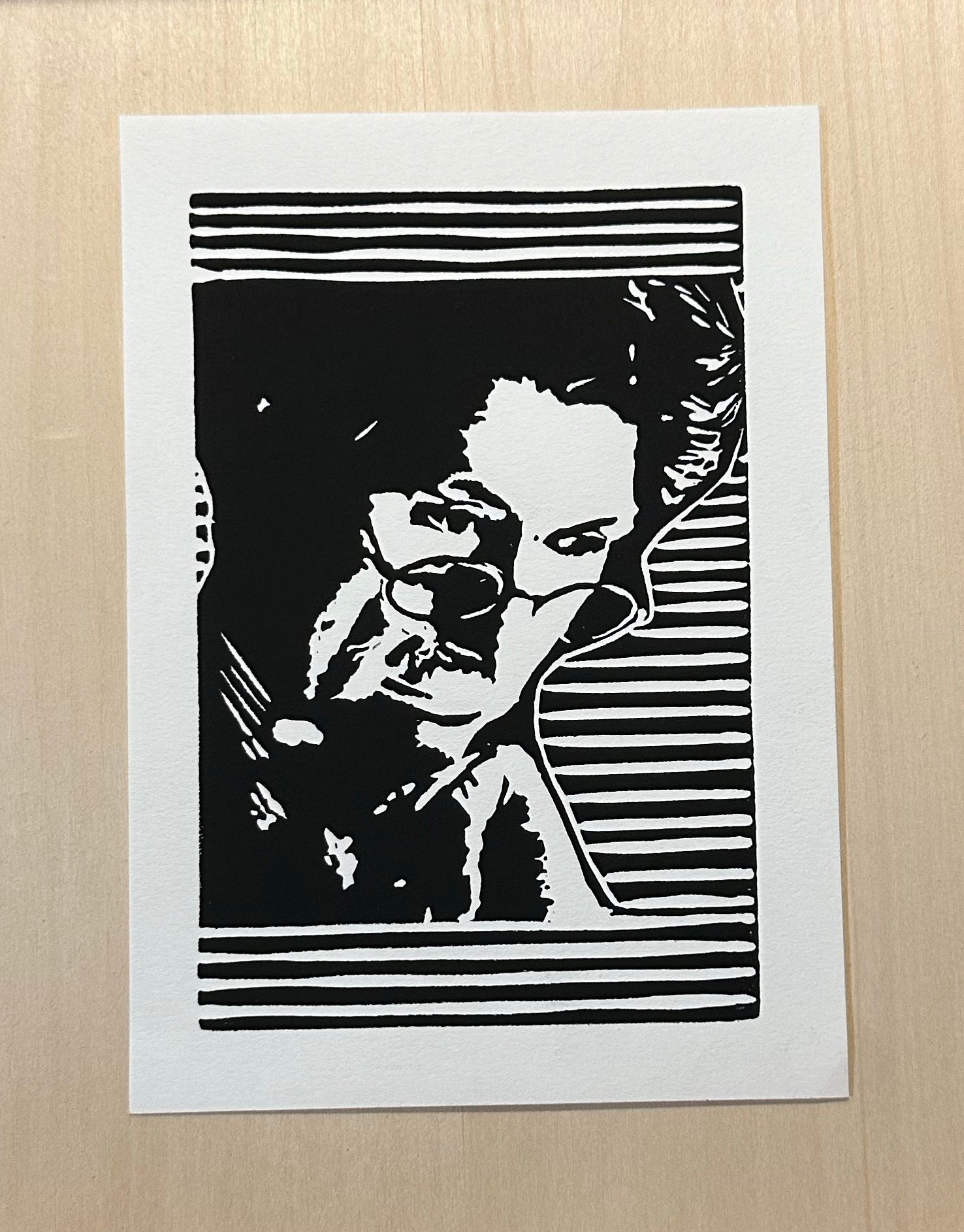 Hand carved on 4x6" block and printed on 5x7" paper.