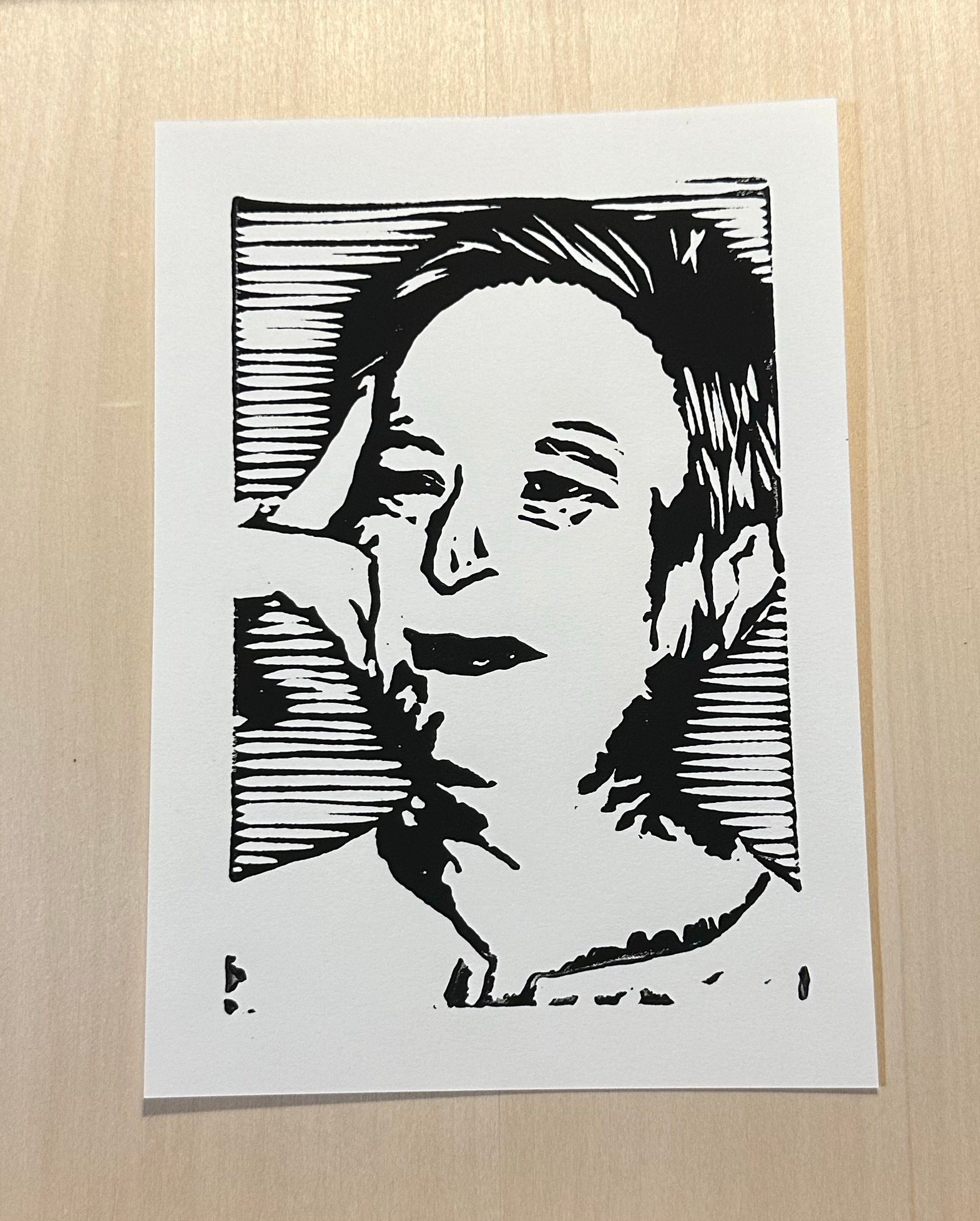 Hand carved on 4x6" block and printed on 5x7" paper.