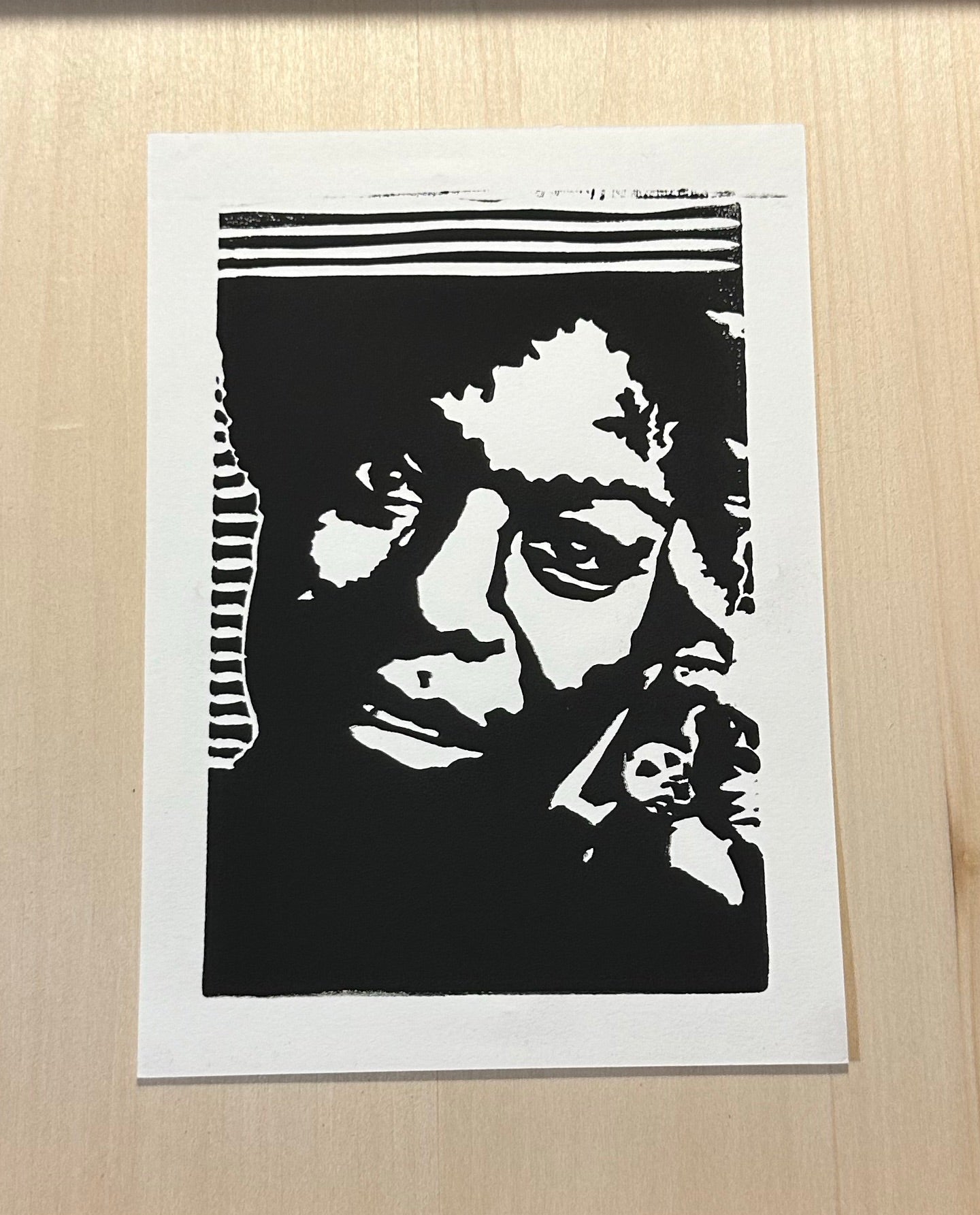 Hand carved on 4x6" block and printed on 5x7" paper.