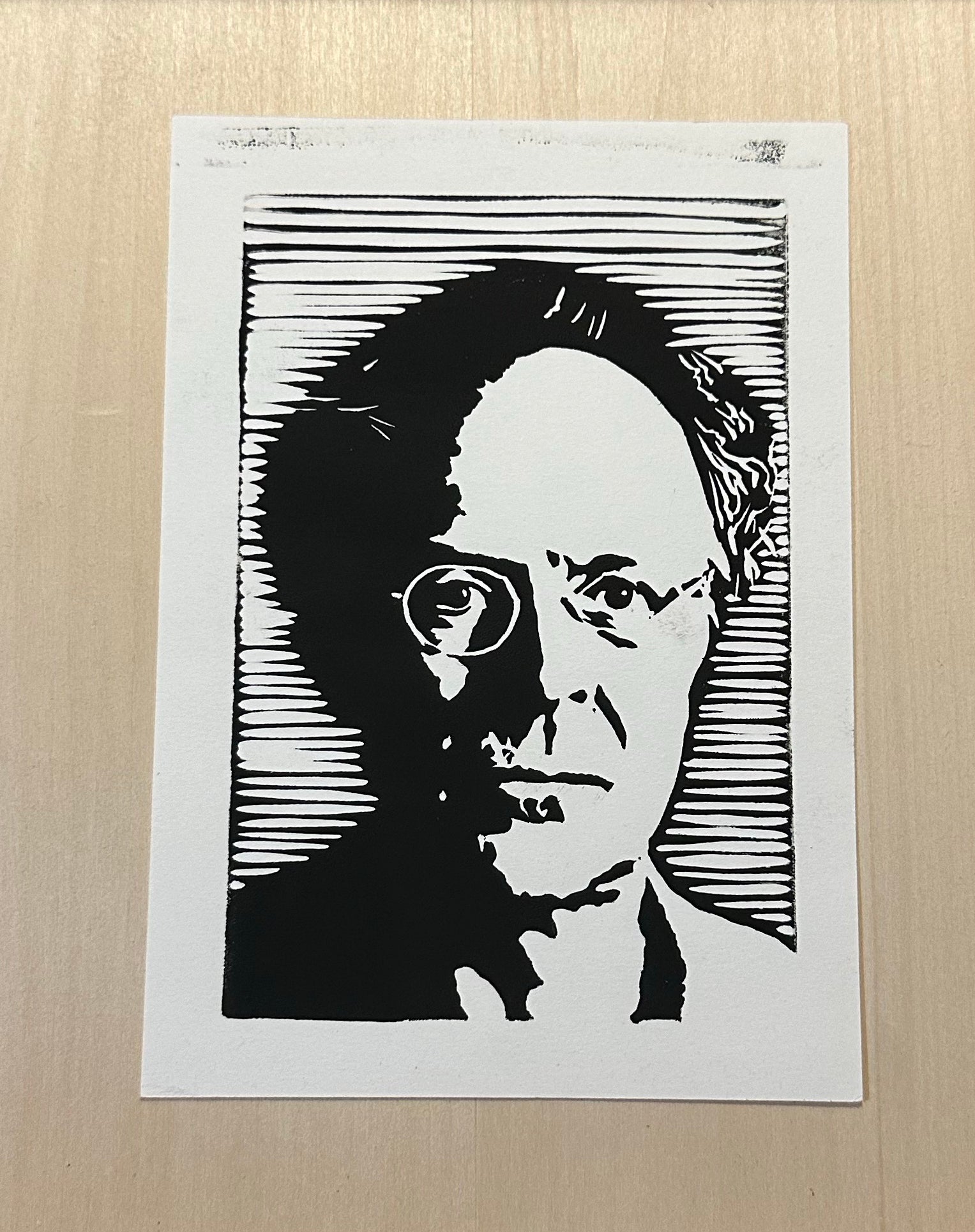 Hand carved on 4x6" block and printed on 5x7" paper.