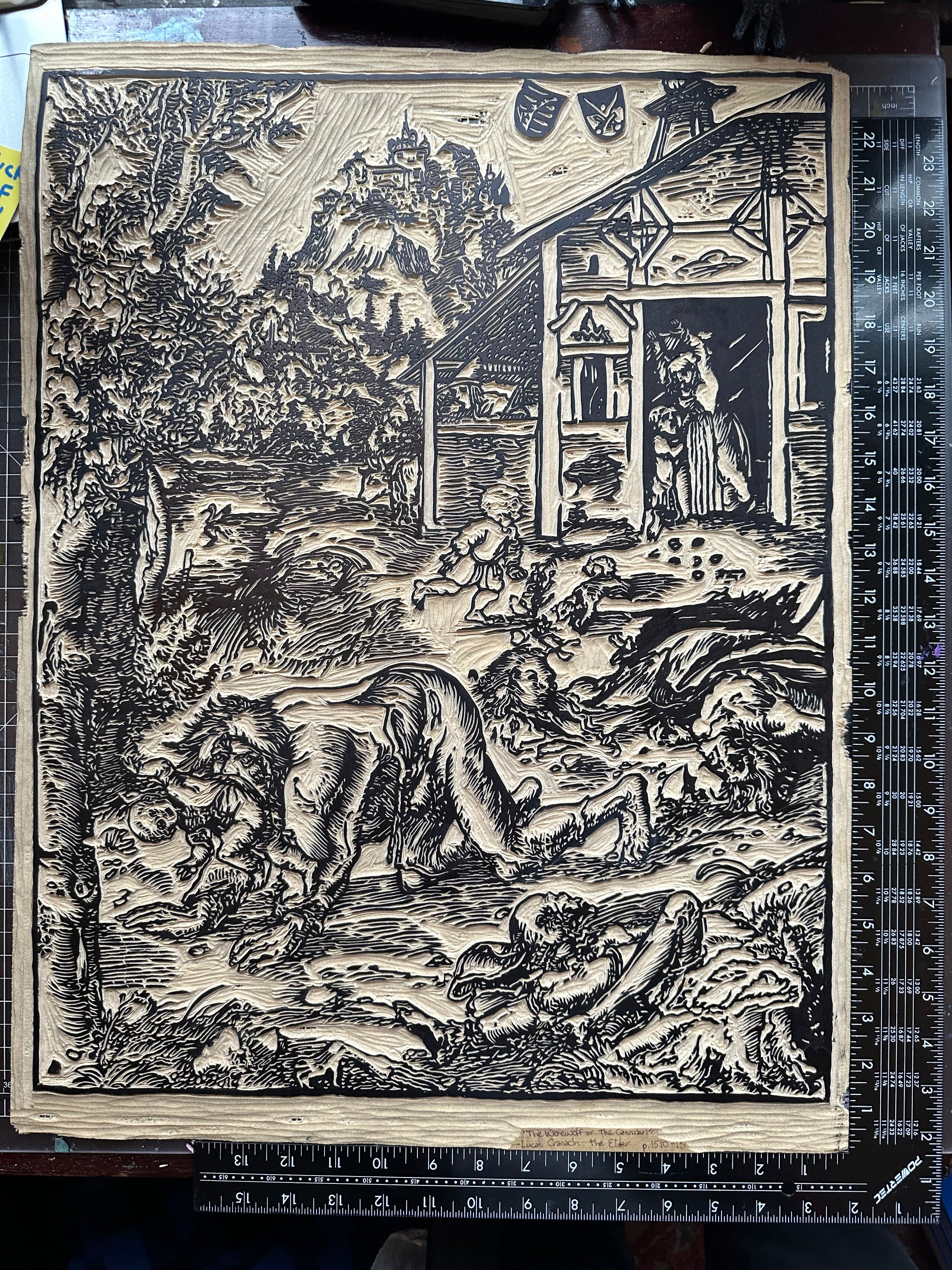 Newly carved remake of Lucas Cranach the Elder's "The Werewolf or the Cannibal" 1472-1553.