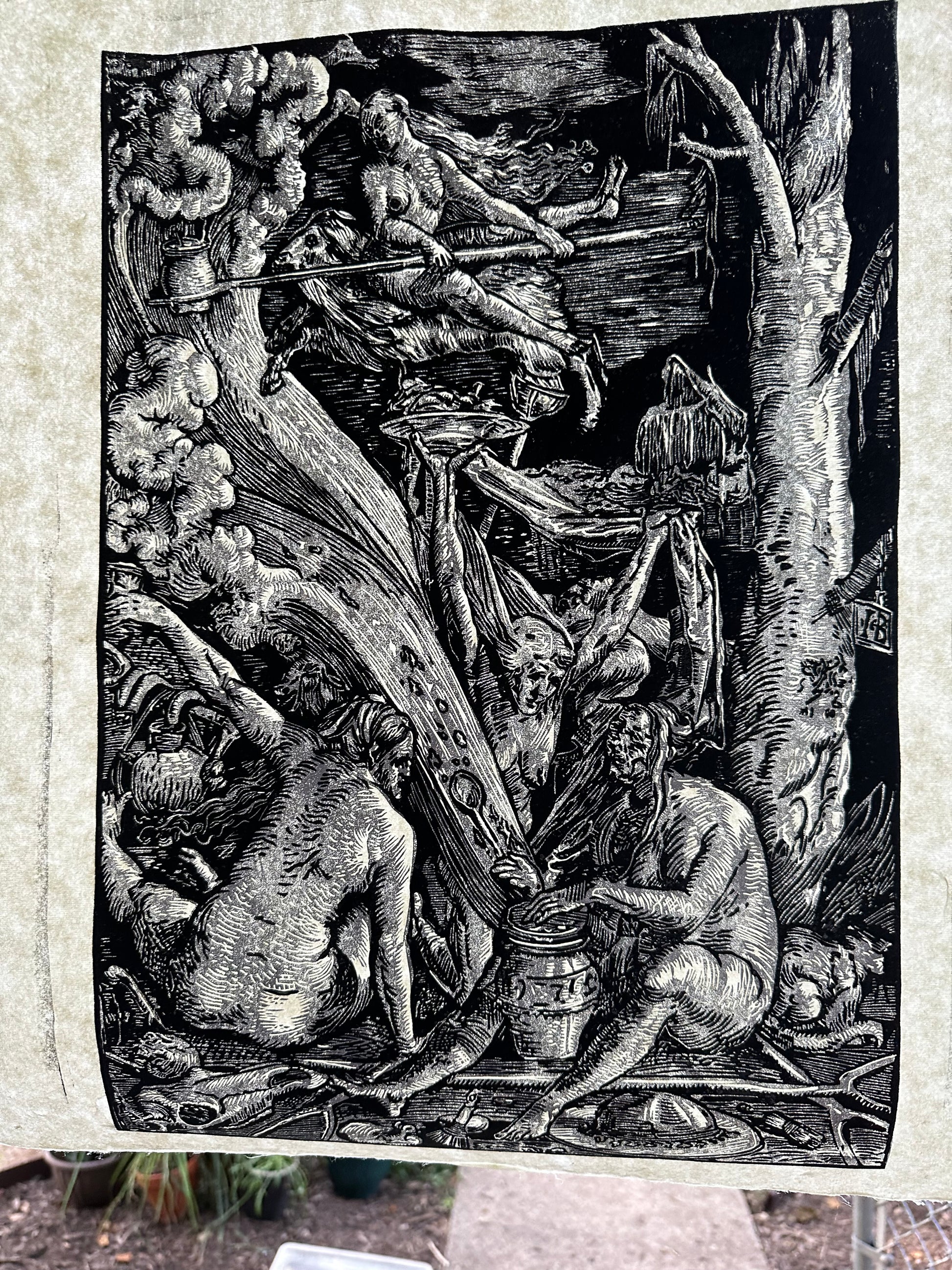 "The Witches" remake, Baldung ~16"x22," Reduction Print (2 color)
