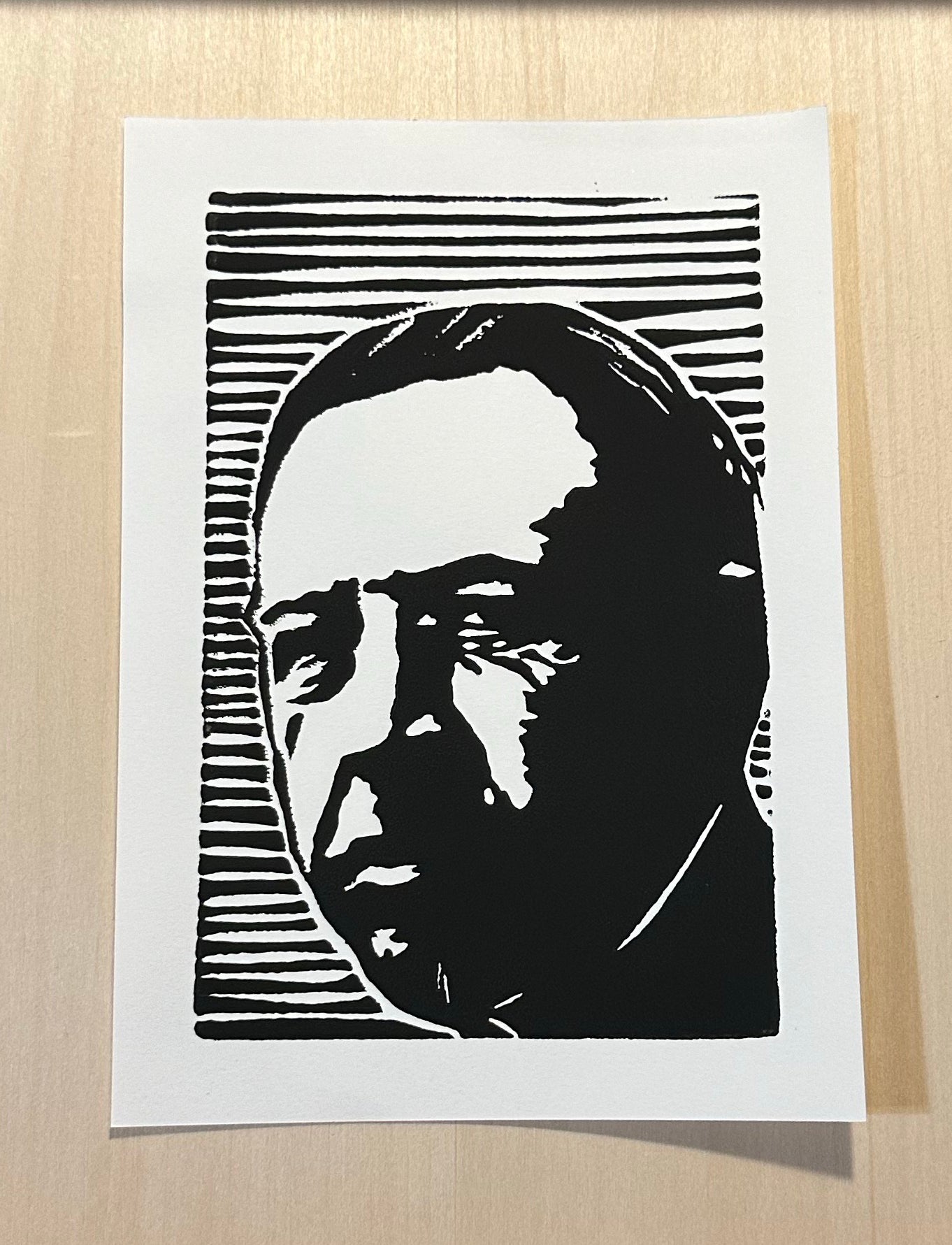 Hand carved on 4x6" block and printed on 5x7" paper.