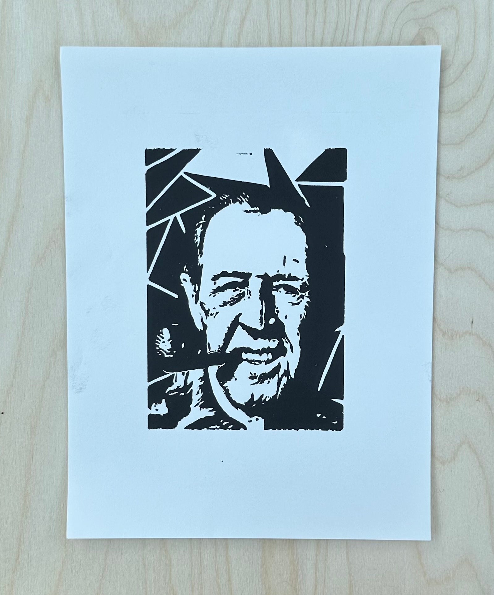 Hand carved on 5x7" block and printed on 9x12" paper.
