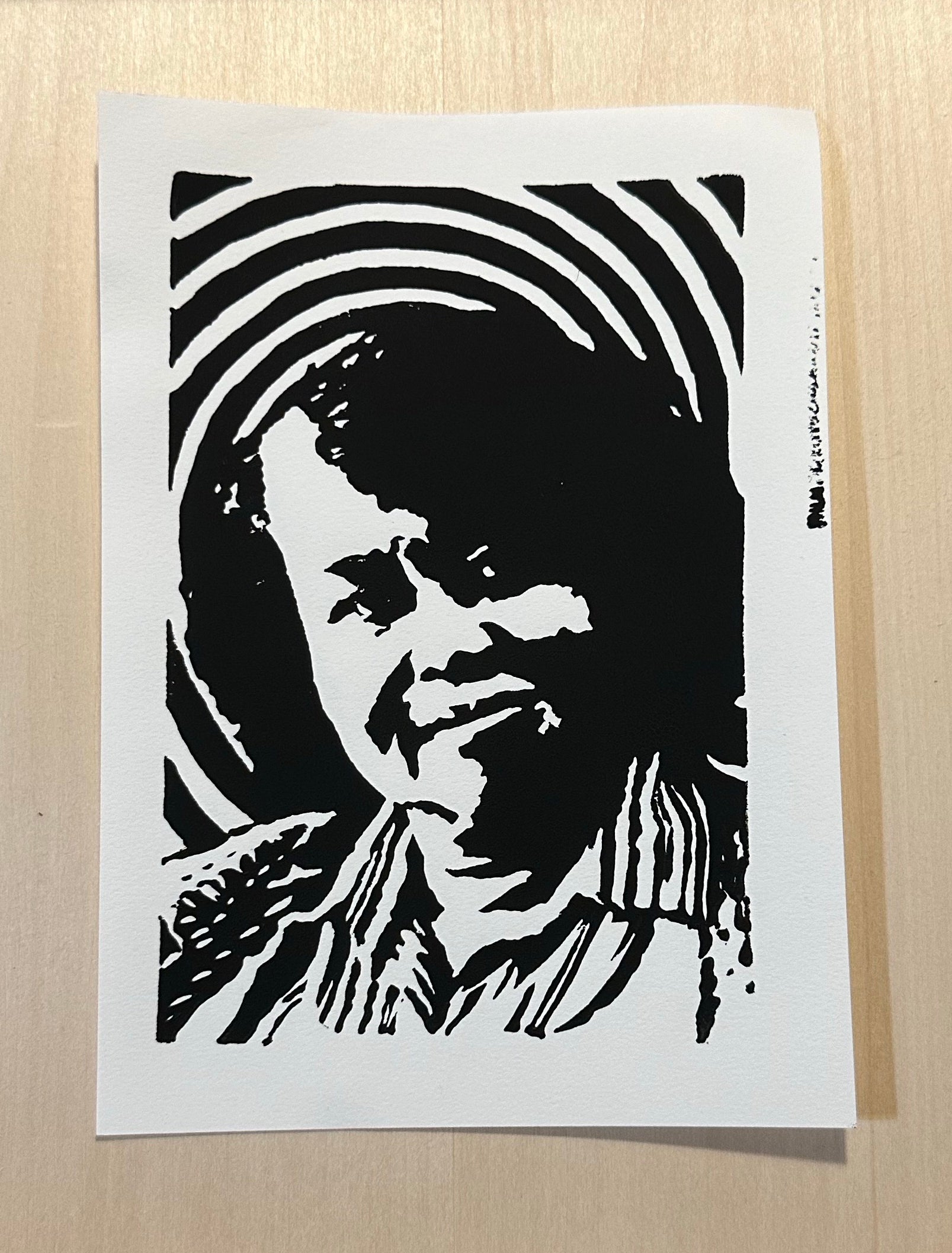 Hand carved on 4x6" block and printed on 5x7" paper.